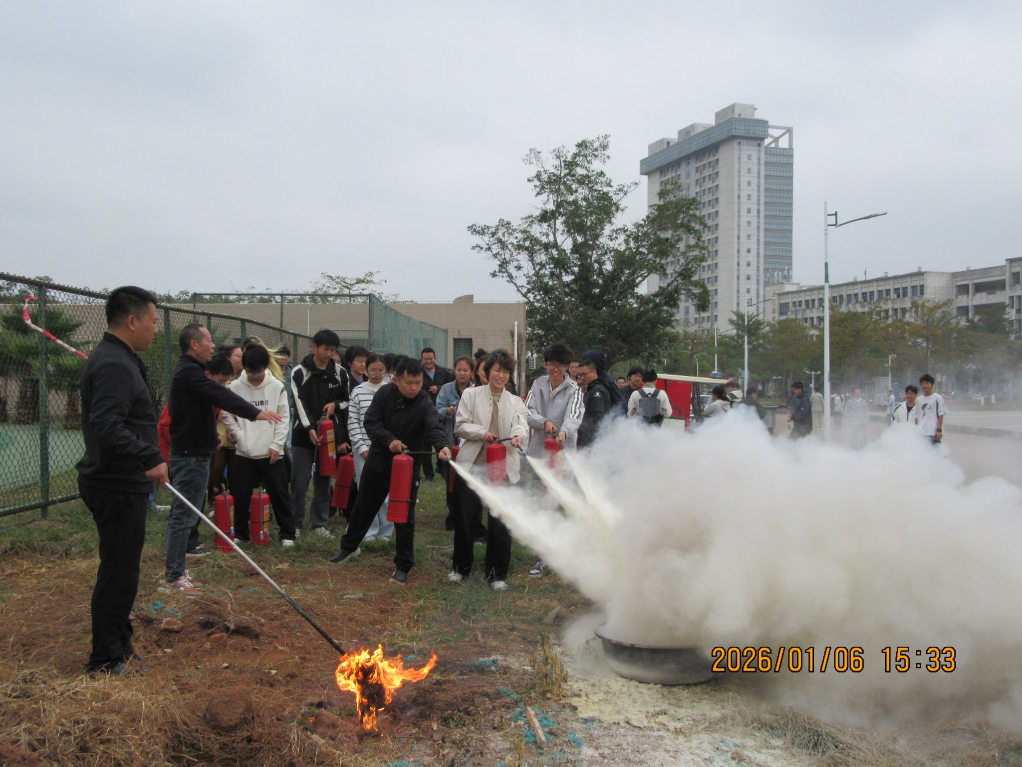 为深入贯彻落实91大神 消防安全管理规定及学校关于开展消防安全培训的通知精神,进一步加强和规范学院消防安全管理,夯实师生消防知识根基,锻造消防安全核心能力,切实预防火灾事故、减少火灾危害,保障全院师生员工生命财产与学校财产安全,2026年1月6日下午,91大神 于第二田径场与体育学院之间的道路区域,组织开展消防安全专题培训及实战演练活动。学院党委书记胡先文、分管副院长李长久全程观摩学习,李长久副院长作了动员讲话,学院教职工代表、实验室管理员及学生代表参加了此次活动。