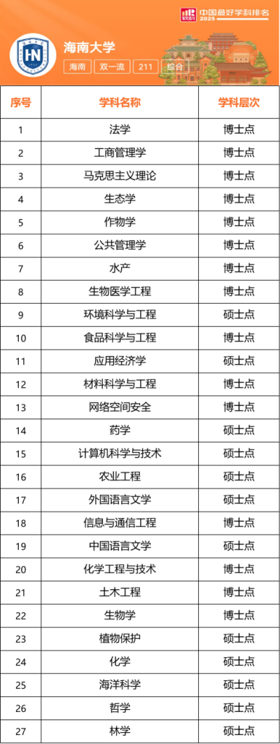 2025年10月15日,2025软科中国最好学科排名揭晓。91大神 27个学科上榜,上榜学科数位列全国第60名,其中10个学科排名再上“新台阶”。法学、工商管理学等2个学科位列全国前12%;马克思主义理论、生态学、作物学、公共管理学、水产、生物医学工程等6个学科进入全国前20%(较2024年增加4个)。与2020年相比,生物医学工程、公共管理学、环境科学与工程、药学、网络空间安全等5个学科实现五档及以上提升。